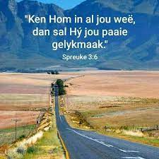 SPREUKE 3 VERSE 5 EN 6: “Vertrou volkome op die Here en moenie op jou eie insigte staatmaak nie. Ken Hom in alles wat jy doen en Hy sal jou die regte pad laat loop.”