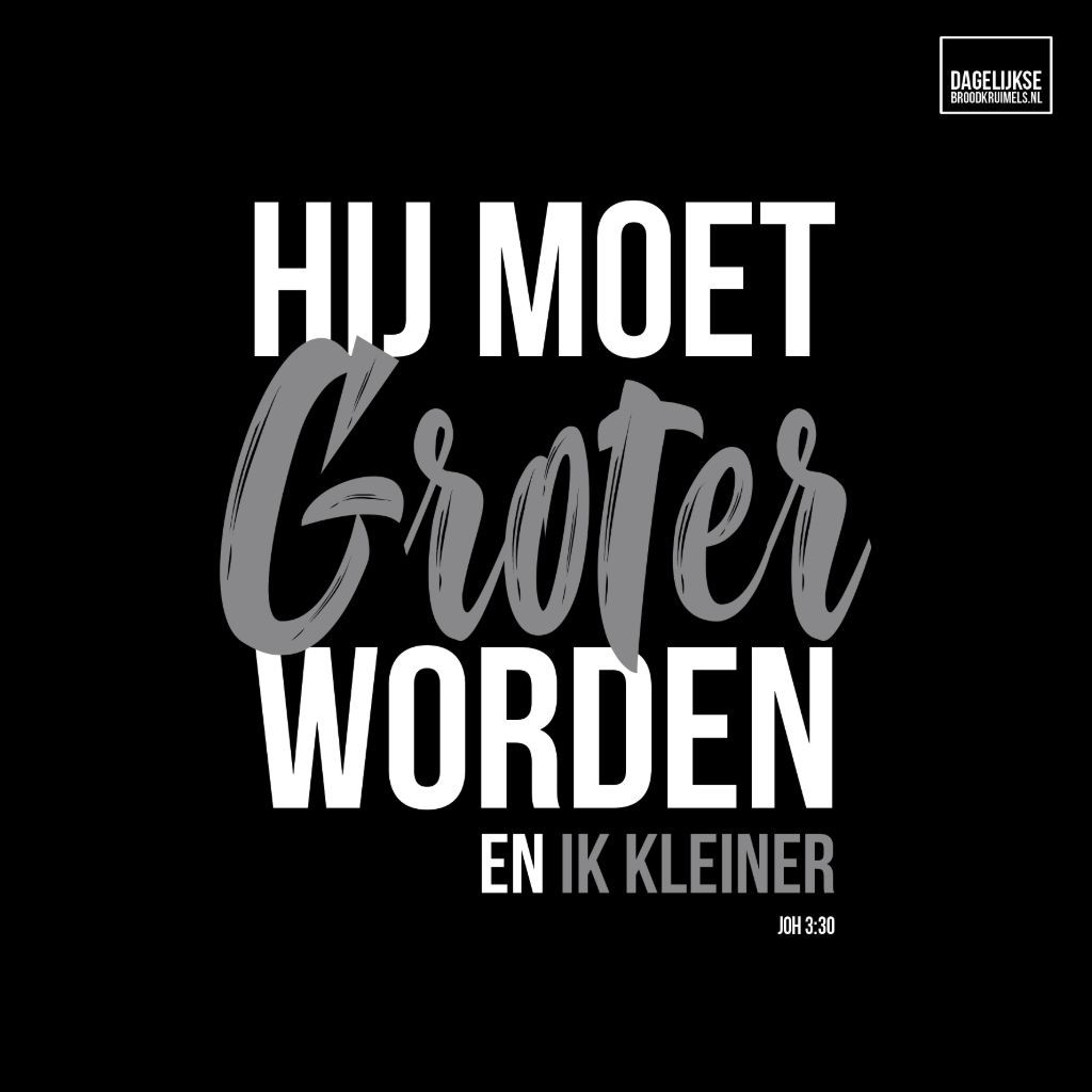 JOHANNES 3: “Hy moet meer word en ek minder. “Hy wat van bo af kom, is bo almal; hy wat van die aarde is, hoort by die aarde en praat die taal van die aarde. Hy wat uit die hemel kom, is bo almal. Wat Hy gesien en gehoor het, dít getuig Hy, en tog aanvaar niemand sy getuienis nie.“