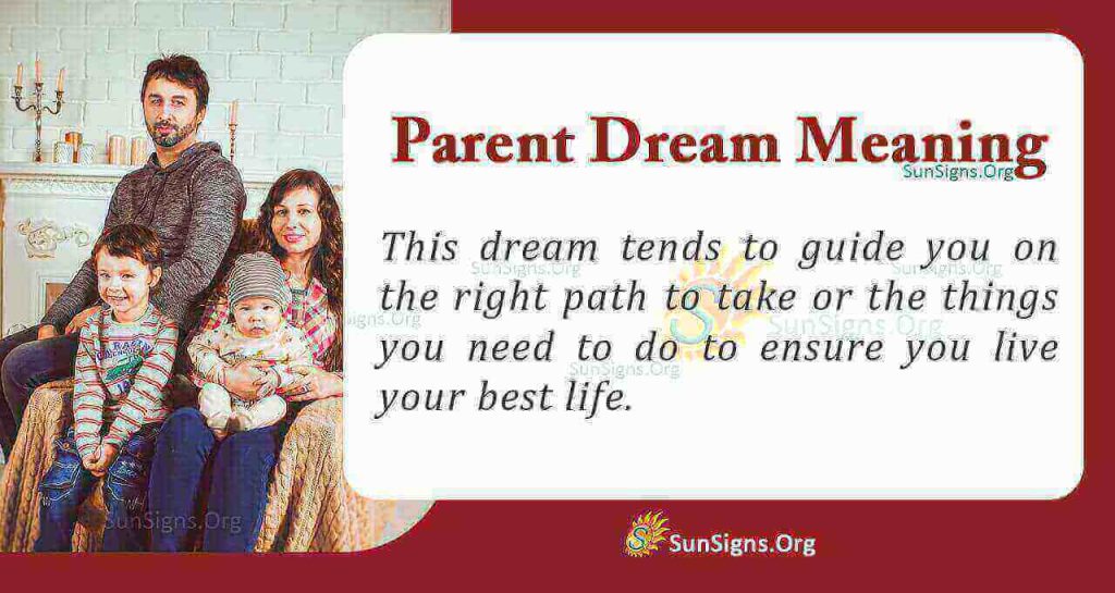 Om jou ouers in jou droom te sien, simboliseer krag, skuiling en liefde. Jy spreek dalk jou bekommernisse uit met hulle. As ‘n reël (outydse) verteenwoordig vaders gesag en moeders simboliseer liefde, en jy sal die volle betekenis van jou droom moet uitvind deur te dink oor wat jou ouers in jou droom gedoen of gesê het, en hoe dit verband kan hou met situasies of kwessies in jou droom. En daaglikse lewe.