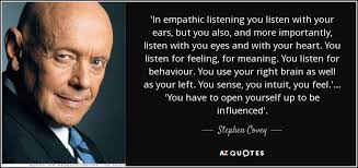 Empatiese luister is nie net om fisies stil te wees nie. Dis om innerlik stil te raak – om jou eie opinies, antwoorde en oordeel opsy te sit sodat jy die ander werklik kan hoor. Soos Stephen R. Covey sê: “Luister met jou ore, maar ook met jou oë en jou hart.”