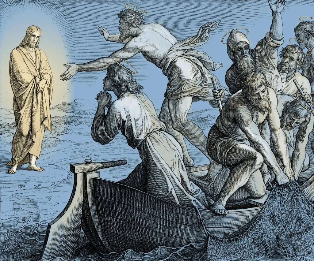 In Johannes 21:1-14, vind ons ‘n pragtige toneel wat ontvou by die kus van die see. Die dissipels, wat nog steeds worstel met die werklikheid van Jesus se opstanding, besluit om te gaan visvang. Dit is ‘n bekende toneel—’n terugkeer na die beroep wat hulle so goed ken. Tog, ten spyte van hulle pogings, vang hulle niks. Dan, in die mis van die dageraad, staan ‘n figuur by die vuur, met vis en brood. Dit is Jesus, al herken hulle hom aanvanklik nie. Sy uitnodiging om te sit en te eet verander die oomblik. Terwyl hulle deelneem aan die ete wat Hy voorsien, word hulle oë geopen vir Sy teenwoordigheid onder hulle.