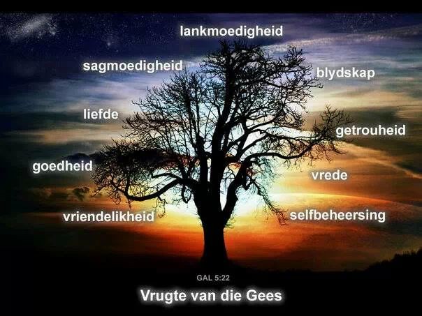 Ek hoop dat die hoor van die preke en jou stiltetyd in die vrug van die Gees jou sal aanmoedig om nog meer daarna te streef om ‘n mooi mens te wees. Nie omdat God dan meer van jou sal hou nie (want Hy het jou al lankal onvoorwaardelik lief), maar omdat die sigbaarwording van die vrug van die Gees in ons lewens God’s manier is om die mense om jou te herinner aan Jesus.