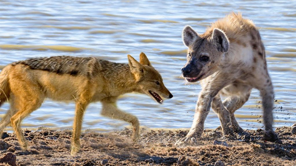 Jakkals, wat alreeds ‘n plan in sy kop het, hou sy hande omhoog. “My suster, ek sal jou vang, kom af!” Maar toe Hiena naby die grond kom, het Jakkals skielik een kant toe gespring en geskree, “Eina, hoe Eina Ai! ‘n Doring het my gesteek!” Hiena het met ‘n harde slag op die grond geval, haar linker agterpoot erg beseer. Sy het gekreun van die pyn terwyl Jakkals net gelag het oor sy eie slim plan.