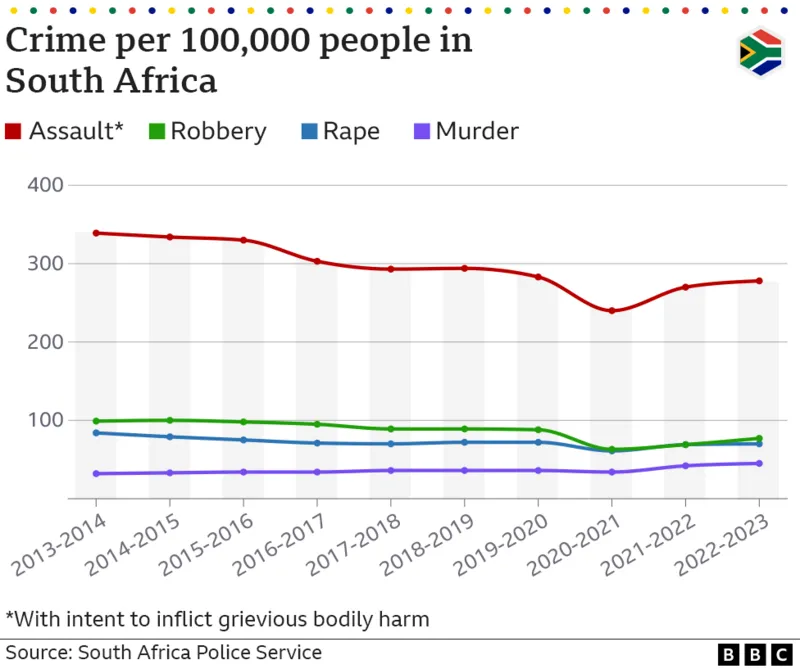 In hul verkiesingsmanifes verklaar politieke partye dat hulle die hoë vlakke van misdaad wat die land vir baie jare geteister het, sal aanpak. Die statistieke toon dat die koers van roof, verkragting en moord amper onveranderd bly. Gemiddeld, in die laaste drie maande van 2023, is een persoon elke 20 minute in Suid-Afrika vermoor. In dieselfde tydperk is meer as 130 mense elke dag verkrag. Ek beskou die vlak van geweld as ‘n oorlog wat teen vroue gevoer word, is die regering, Polisie in staat om die probleem op telos, besluit jy maar…?