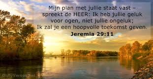 JEREMIA 29 VERSE 1 TOT 14: “ …Ek weet wat Ek vir julle beplan, sê die Here: voorspoed en nie teenspoed nie; Ek wil vir julle ‘n toekoms gee, ’n verwagting…”