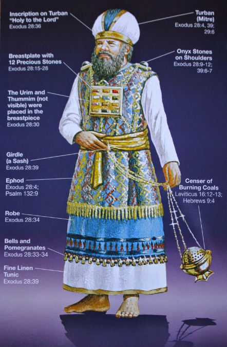Ons Bybelteks begin met ‘n beskrywing van die Hoëpriester se kleding. Dit moes ‘n asemrowende gesig gewees het: die Hoëpriester wat in volle gewaad in die Heilige Deel van die Tabernakel diens doen. Vers 2 van ons hoofstuk noem dit “heilige klere”. Hy het die pragtige Efod gedra, daaronder die blou mantel met die goue klokkies en granaat-pels, en op sy kop ‘n tulband.
