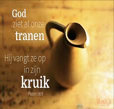Gebed – Troos aan Bedroefdes: Hemelse Vader, Ons nader U met swaar harte en gevulde gees. Here, net soos hierdie vroue, het ons vandag ook ons tranekruikies. Ons harte is gevul met herinneringe en liefde vir diegene wat ons verloor het. Ons dra ons pyn en verdriet aan U op, wetende dat U elke traan sien en elke sug hoor. Die Psalm digter herinner ons daaraan dat U ons ellende raakgesien het en dat U ons trane in U bottel bewaar. Hierdie beeld is vir ons ‘n troos, ‘n teken dat ons nie alleen is in ons pyn nie. Ons trane is kosbaar vir U, en U versamel hulle met ‘n Vader se liefde en sorg. Ons bid dat U ons sal vertroos in ons hartseer, net soos U die vroue van ouds getroos het. Help ons om die liefde en herinneringe van ons geliefdes te koester, selfs in ons trane. Mag ons verdriet ‘n uiting wees van die innige liefde en trou wat ons vir hulle gehad het, en mag ons troos vind in die wete dat U naby is. Here, ons bid vir almal wat tans deur die donker vallei van rou gaan. Mag hulle U nabyheid en vrede ervaar. Mag hulle vind dat U die enige is wat werklik kan troos in die diepte van hul verlies. Ons vra dit in die naam van Jesus Christus, ons Trooster en Verlosser. AMEN