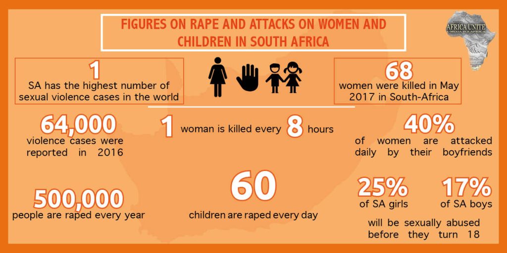 Suid-Afrika het een van die hoogste gevalle van gesinsgeweld ter wêreld. En ongelukkig is huishoudelike geweld die mees algemene en wydverspreide menseregtevergrype in Suid-Afrika. Volgens Stats SA se Demografiese en Gesondheidsopname word na skatting een uit elke vyf Suid-Afrikaanse vroue ouer as 18 getref deur fisieke gesinsgeweld. In ten minste 46% van gevalle mishandel die betrokke mans ook sy eie of die kinders wat saam met die vrou woon.