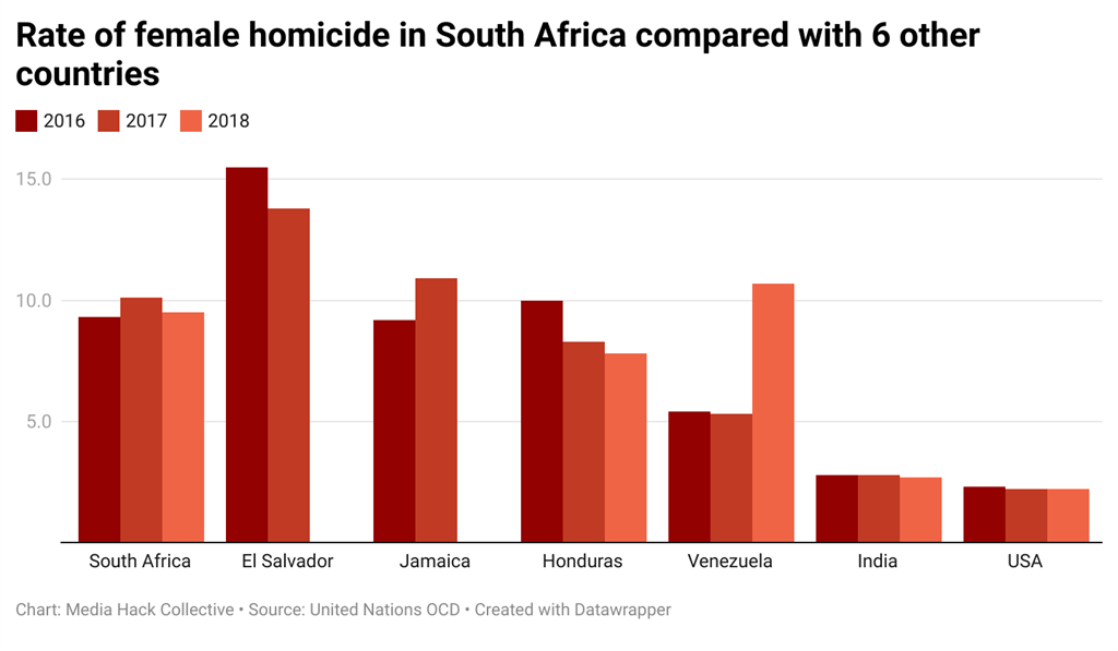 Die moord op vroue in Suid-Afrika is ‘n ernstige probleem. Per dag word gemiddeld 4 vroue vermoor, wat uiters hoog is en daarop dui dat vroue in die land nie veilig is nie. Hierdie syfer is ‘n duidelike aanduiding van die omvang van geslagsgebaseerde geweld en die dringendheid waarmee die saak aangespreek moet word. Ter vergelyking word 0.4 vir elke 100 000 vrou in Nederland vermoor terwyl 9.0 vroue vir ellke 100 000 vroue in Suid Afrika vermoor word. Pole met 1.4 het die hoogste syfer in Europa.