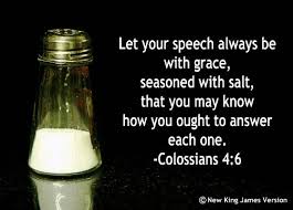 Kolossense 4 vers 6 “Laat julle woord altyd wees met genade, met sout besprinkel, sodat julle weet hoe julle elkeen moet antwoord.”
