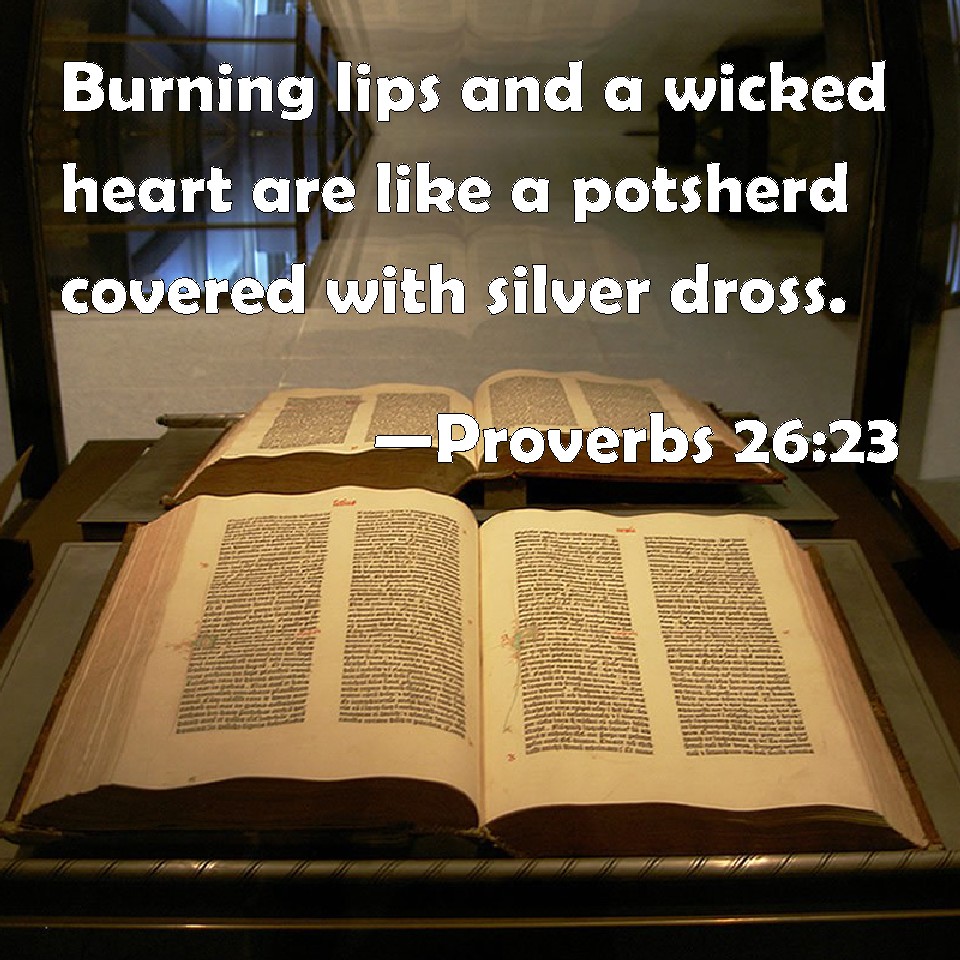Spreuke 26 vers 23: “‘n Brandende lip en ‘n boos hart is soos ‘n potskerf oorgetrek met silwerskuim.”